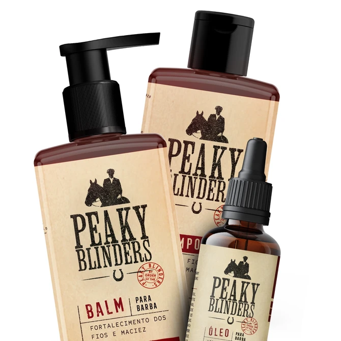 Aproveite e confira o Kit completo com Shampoo, Balm e Óleo para Barba Peaky Blinders.